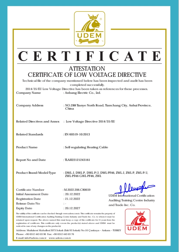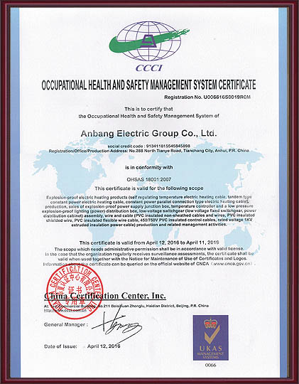 安邦電氣股份有限公司,總部位于北京市長安街,成立于2004年,注冊資金10088萬。安徽生產(chǎn)基地占地面積63000平方米,擁有66套各類生產(chǎn)線,其中進口生產(chǎn)線6套。國家高新技術(shù)型企業(yè),滁州市市長質(zhì)量獎企業(yè),專精特新“小巨人”企業(yè),擁有國家知識產(chǎn)權(quán)局授權(quán)的45項專利,其中發(fā)明專利28項 , 主筆《太陽能熱利用自限溫電熱帶安裝規(guī)范》行業(yè)標準,參編《自限溫電伴熱帶》國家標準、《工業(yè)和商業(yè)用電阻式伴熱系統(tǒng)》國家標準、《太陽能熱利用自限溫電熱帶》行業(yè)標準、《爆炸性環(huán)境 電阻式伴熱器》國家標準等7項國家標準。企業(yè)通過UL認證,國家強制性 CCC產(chǎn)品認證,ISO9001質(zhì)量管理體系認證,ISO14001環(huán)境管理體系認證,ISO45001職業(yè)健康安全管理體系認證,Q/SHS0001.1健康、安全與環(huán)境管理體系認證,歐盟防爆ATEX認證,歐盟CE認證,RoHS認證,俄羅斯海關(guān)聯(lián)盟認證,國家防爆電氣CCC證書。產(chǎn)品系列:集膚伴熱系統(tǒng)、電伴熱系統(tǒng)、電加熱器、電地暖系統(tǒng)、集儀器儀表、電線電纜、高低壓配電柜(箱)、電纜橋架、閥門管件等等設計、制造、銷售。產(chǎn)品應用于航天航空、軍工、石油、石化、天然氣、機場、化工、鋼鐵、隧道、消防、養(yǎng)殖、融雪化冰、室內(nèi)供暖、國家電網(wǎng)及眾多電廠等等國家重點工程。出口美國、英國、德國、俄羅斯、韓國、日本、哈薩克斯坦、烏克蘭、伊朗等眾多國家。